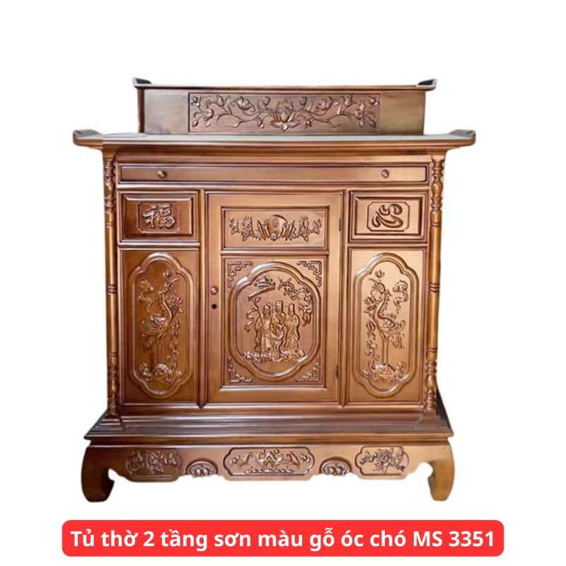 Việc sở hữu một tủ thờ đẹp và chất lượng sẽ nâng tầm giá trị không gian tâm linh. Tủ thờ 2 tầng sơn màu gỗ óc chó không chỉ là nơi thờ cúng ông bà tổ tiên, mà còn là điểm nhấn nội thất sang trọng trong phòng thờ. Với kích thước đa dạng, bạn dễ dàng lựa chọn mẫu phù hợp với diện tích phòng thờ, mang đến trải nghiệm thờ cúng trang nghiêm, chuẩn phong thủy cho gia đình.